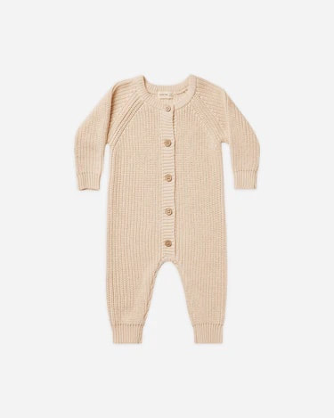Chunky Knit Jumpsuit made of soft and chunky sweater knit, that is sure to keep you little one cute and cozy this fall. Featuring coconut buttons down the front and a relaxed fit.