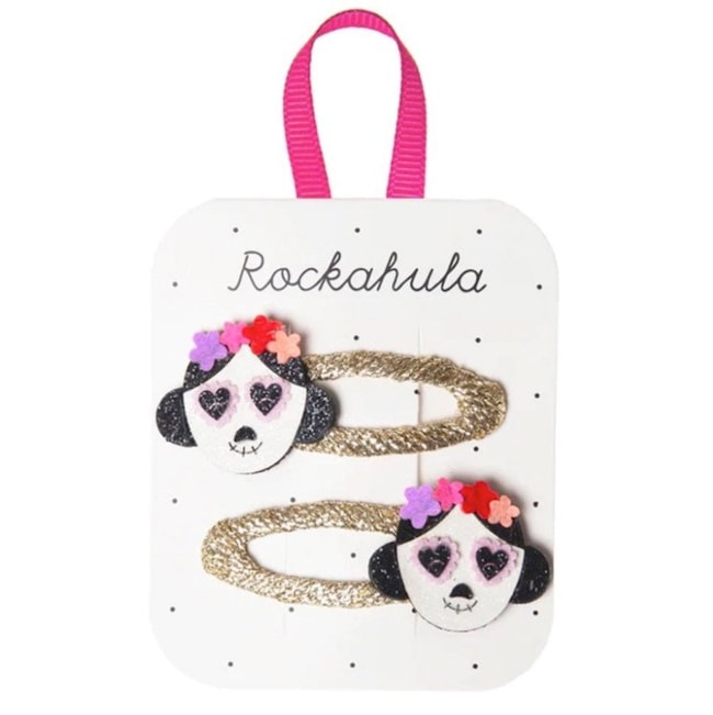 Sing and dance this halloween in these Dia De Los Muertos hair clips! The perfect accessory for spooky celebrations, these sparkly clips feature the cutest sugar skulls, adorned with a colourful crown of flowers.