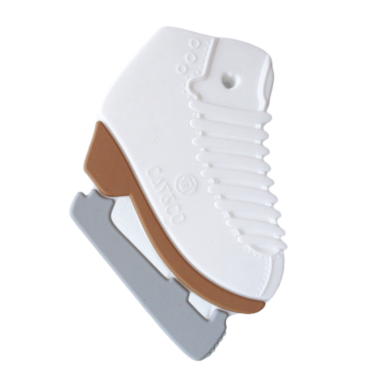 CAY & CO INC. is home to the figure skate teether ©. Skate teether can be used alone, or attached to one of our pacifier clips so its always within reach. Our skate teether helps provide relief from teething, soothing your little ones gums the natural way, whenever the urge strikes. Tip: Place in freezer for added relief. You can never have too many options for teething relief! Give them something that is safe to chew on that dries fast and cleans easy! They will love the amazing textures, and their sore little teething gums will thank you! Listing is for (1) Figure skate silicone teether (3.27” x 3.12” x 0.4”) with raised, heart textured bumps on the backside maximizing sensory stimulation