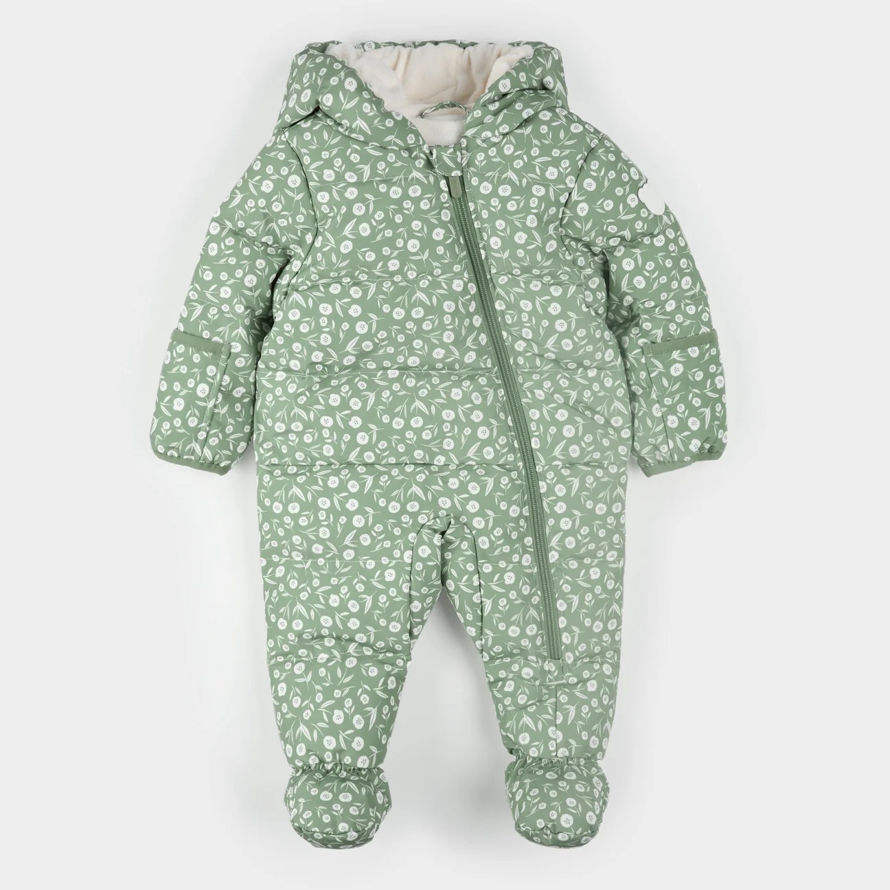 Snow days never looked so good with this floral print snowsuit. Water repellant and breathable, the fleece-lined snowsuit keeps her comfortable and warm, even during the coldest days of winter. The wind guard sleeve openings, elastic ankles and face-hugging hood keep out the elements, while the full-length zipper makes preparing for heading outdoors easy.