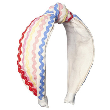 Made in the softest cream fabric and with brightly colored ric rac ribbon – this headband is perfect to add a pop of color to your summer adventures! Featuring a twisted knot and made for a comfortable fit for little heads!